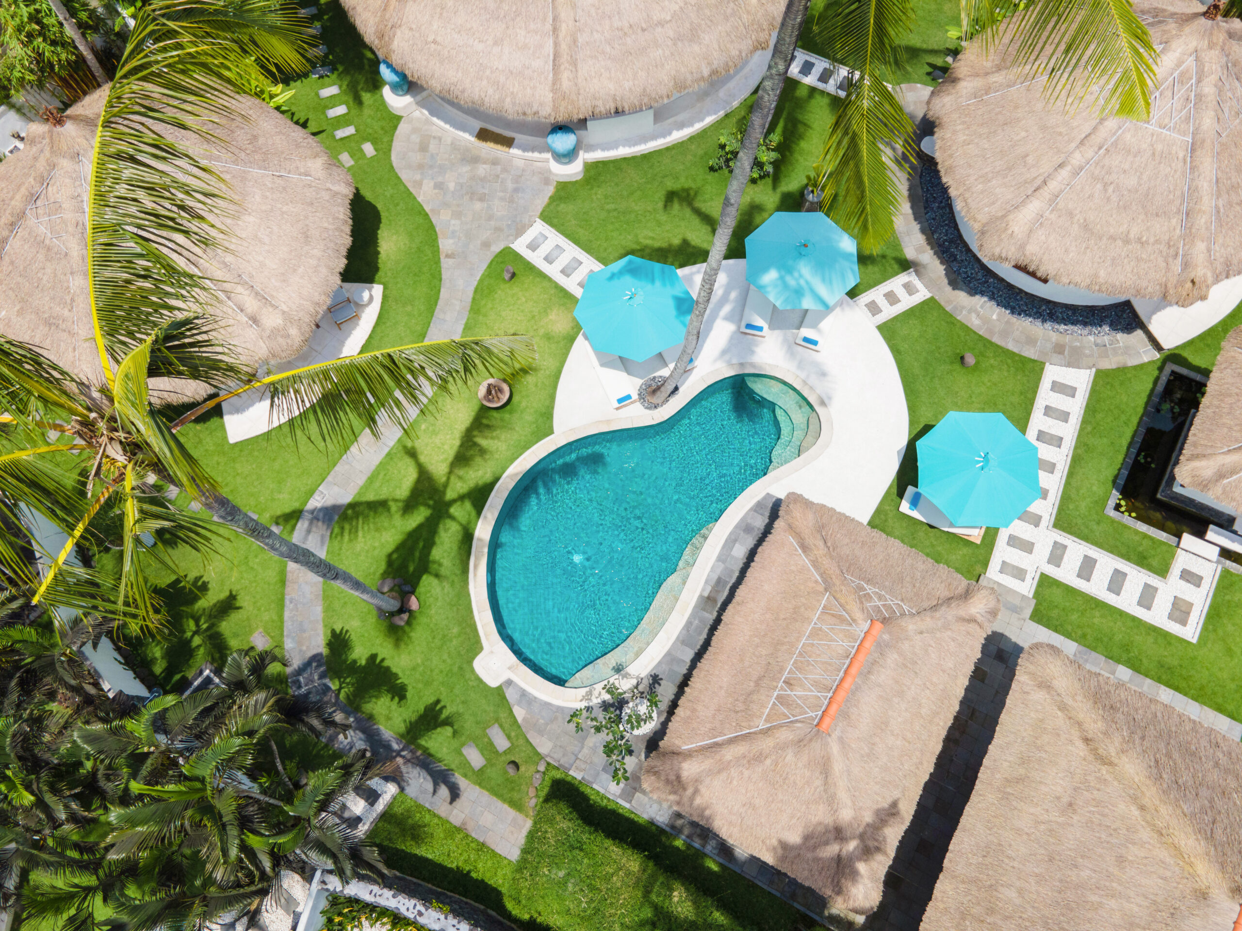Enjoy absolute privacy in spacious master villas and stylish round villas that combine Balinese charm with modern luxury. Furnished in charming boho Bali and beach style, the villas offer king-size beds, exclusive bathrooms with handcrafted stone or terrazzo bathtubs and a private spa atmosphere. Each villa also has its own private terrace, perfect for a relaxing start to the day. Surrounded by tropical manicured gardens, this is the perfect retreat for unforgettable moments with family and friends. A place where comfort and style merge – your dream vacation awaits!